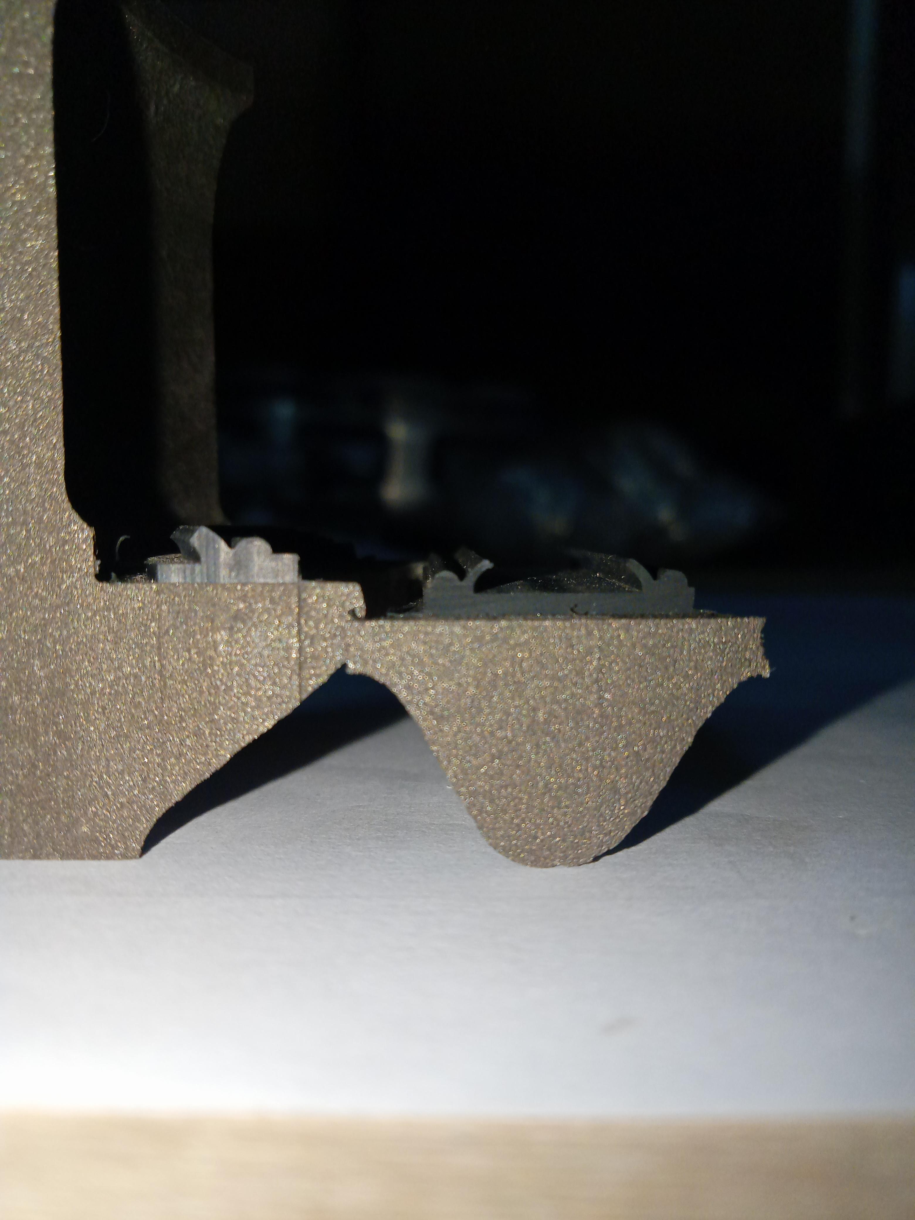 i already sliced the body. it shows that there is different thickness of the rubber profile. one is very thin and the other is very thick. i'm assuming that the thick side might cause it not get better sealed because it considered not elastic.