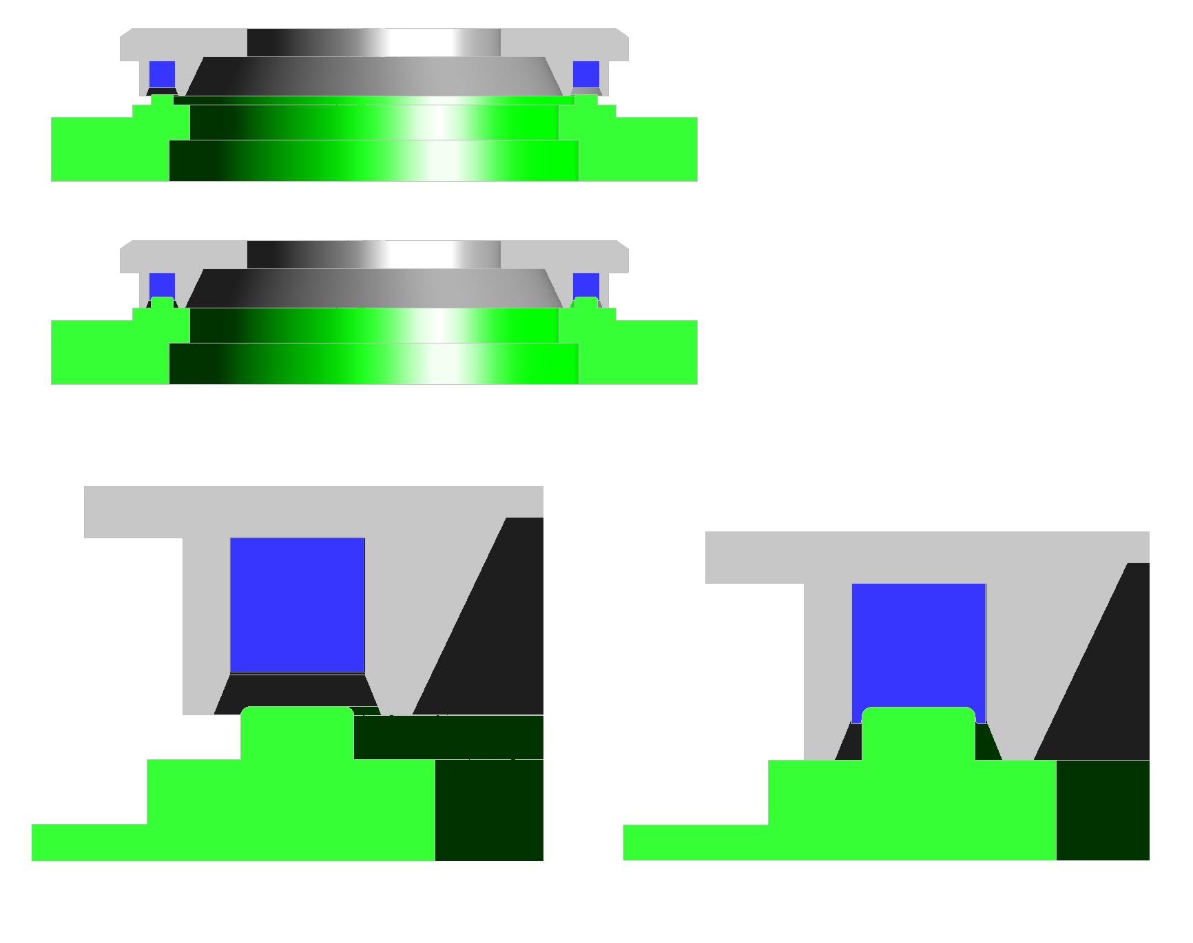 Agreed, the sealing lip is on the wrong side, when pressure is added the lip will just fold over at the weakest point. Flip the direction of the yellow outlined lip so that the lip is pointing up and to the right. ***And create a recess in the metal lid so the lip of the seal is received and forced against it. Is there a clamping force for when the lid is shut? This is not an easy task and will take some fiddling to dial in the parameters...