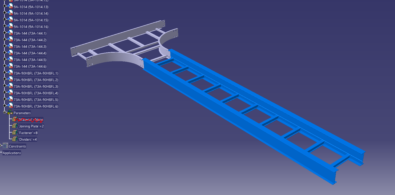 Each product will need (8) number of fasteners, (2) Number of joining plates at connection, and (2) dividers per section depending on how many sections of cable tray is required for the project. These are all just empty parts so that it'll show up on my BOM.