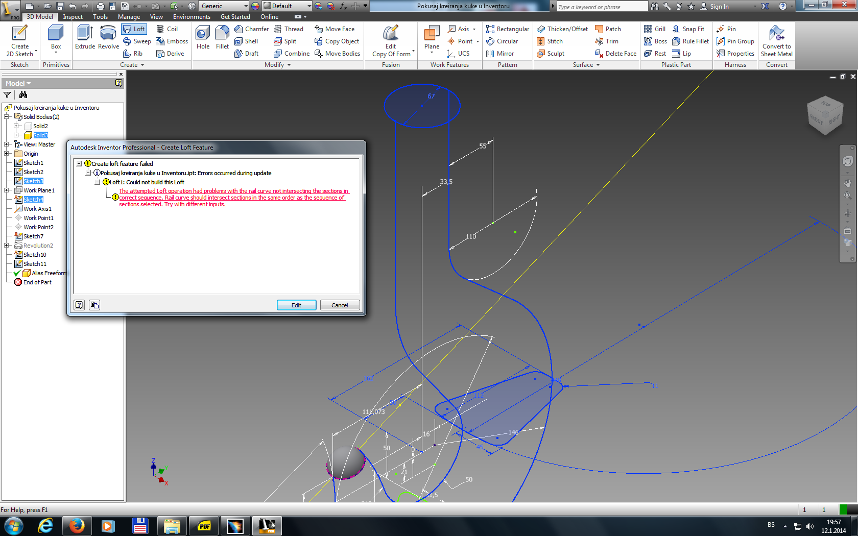 Problems with loft option in Autodesk Inventor