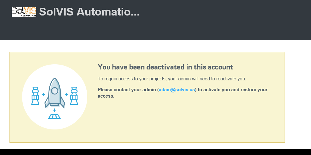 Please contact your admin (admin@myaddress.com - not our admin real email here) to activate you and restore your access.