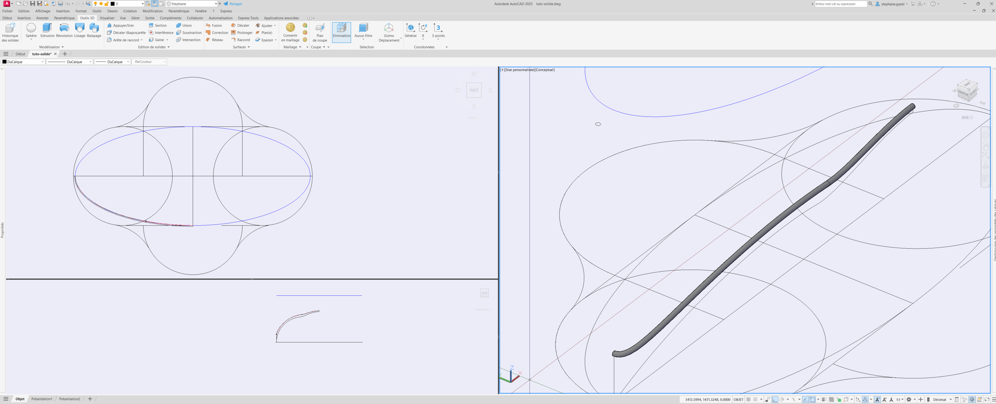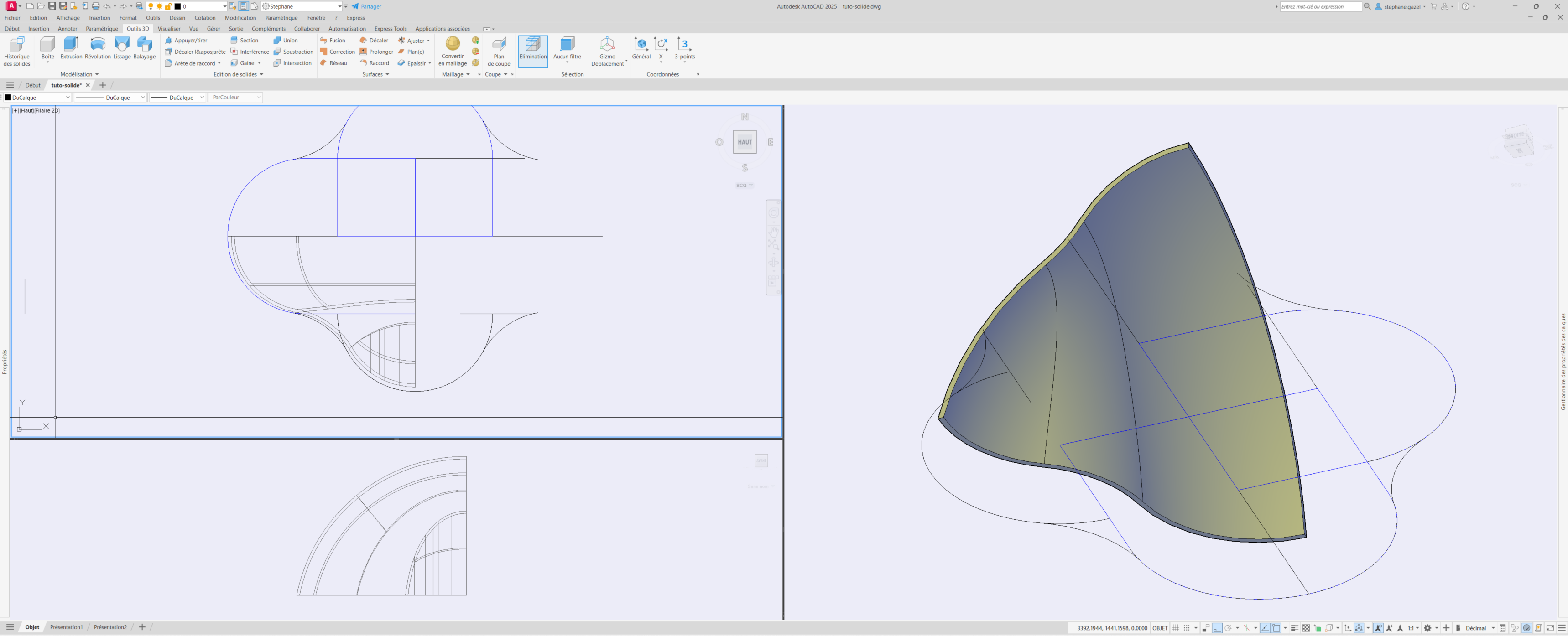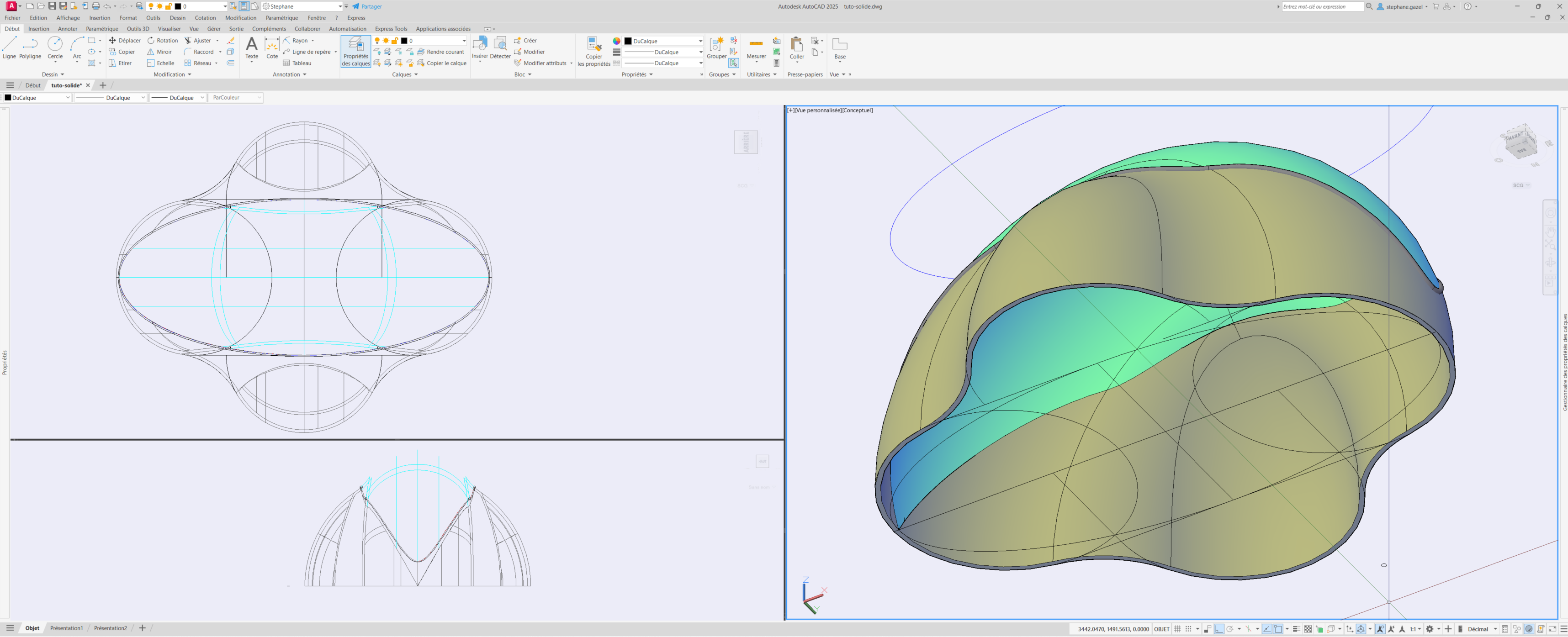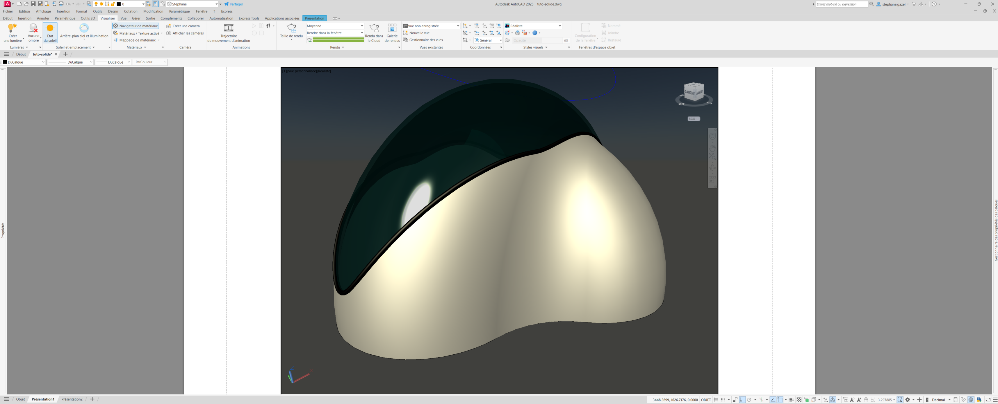 Use solid modeling commands in AutoCAD to create a fluid shape.