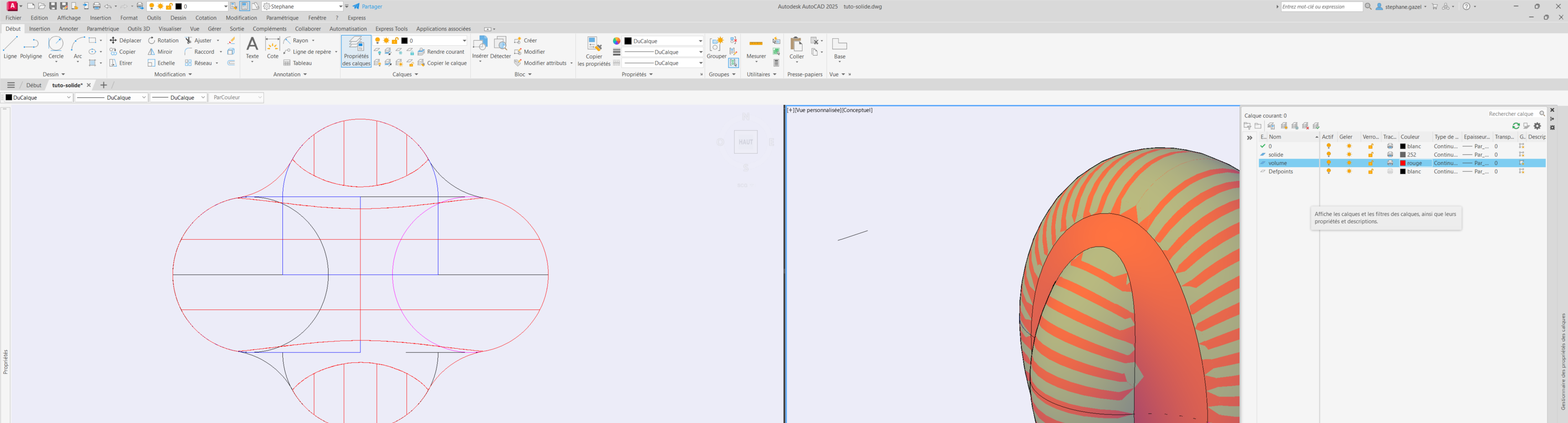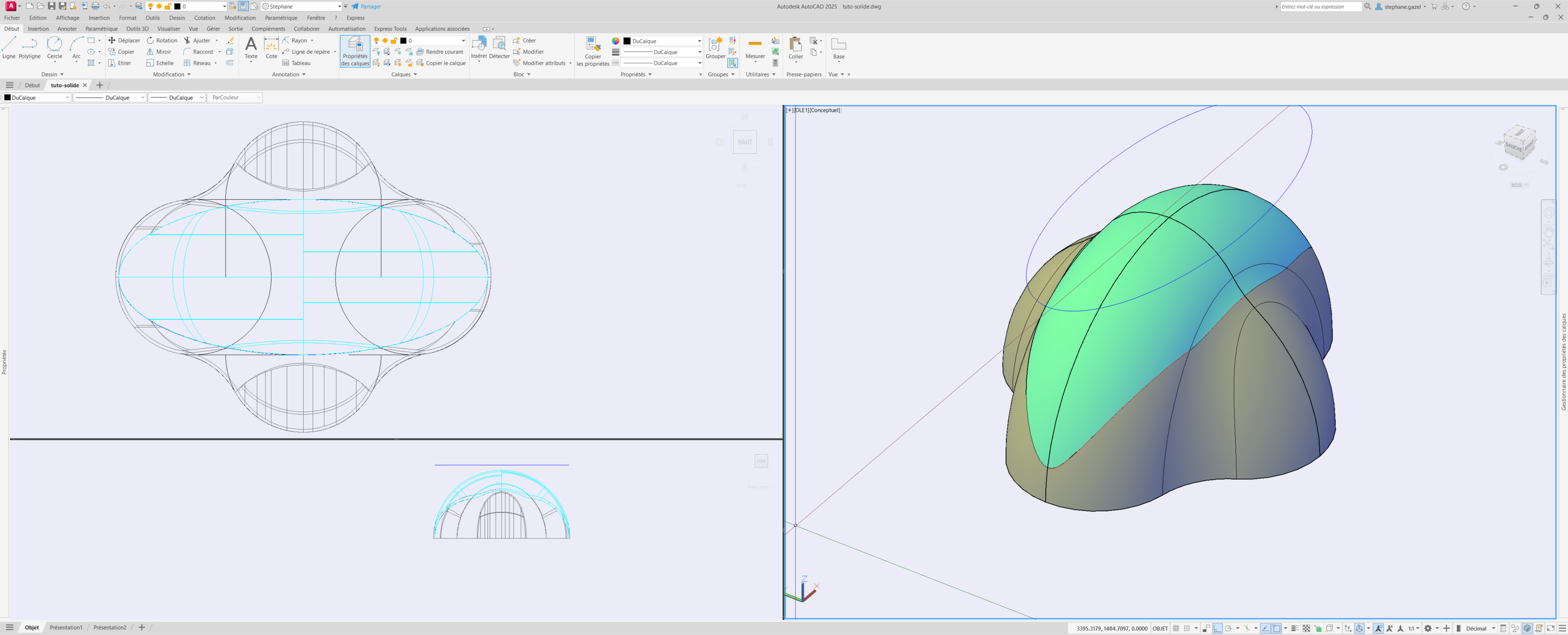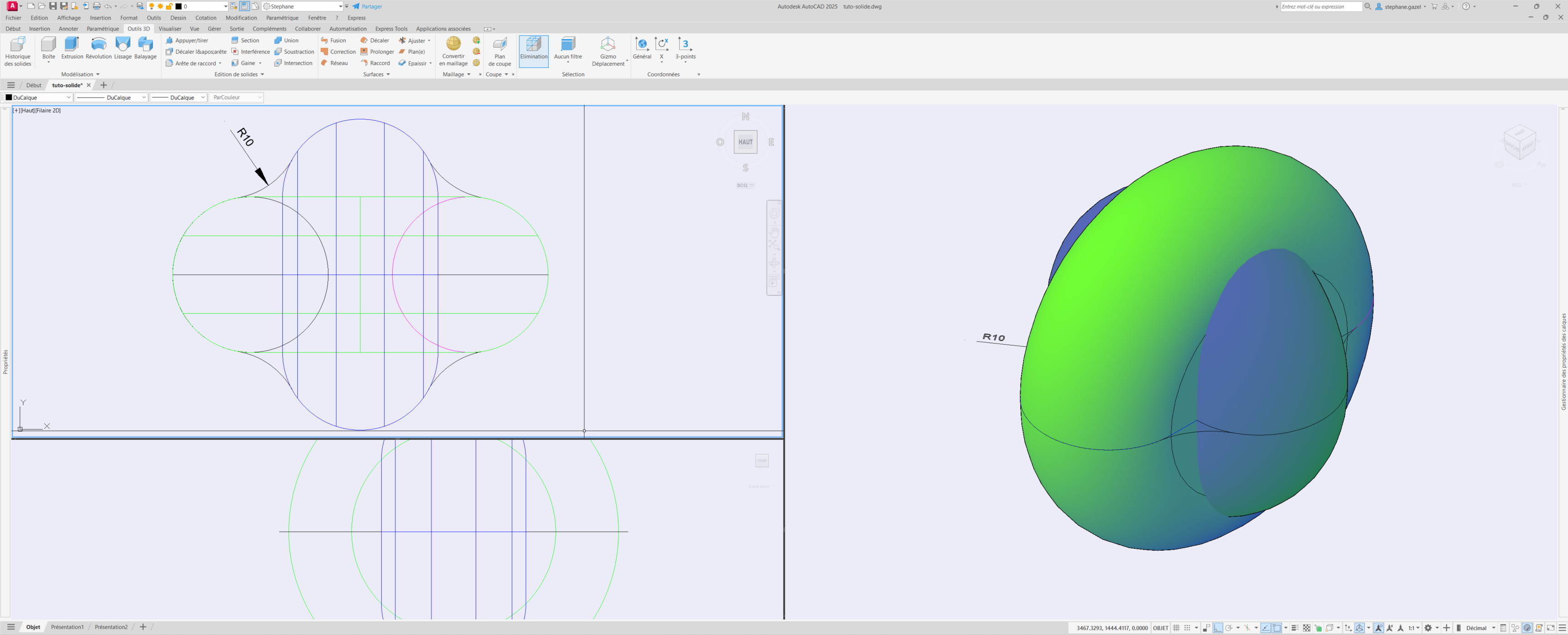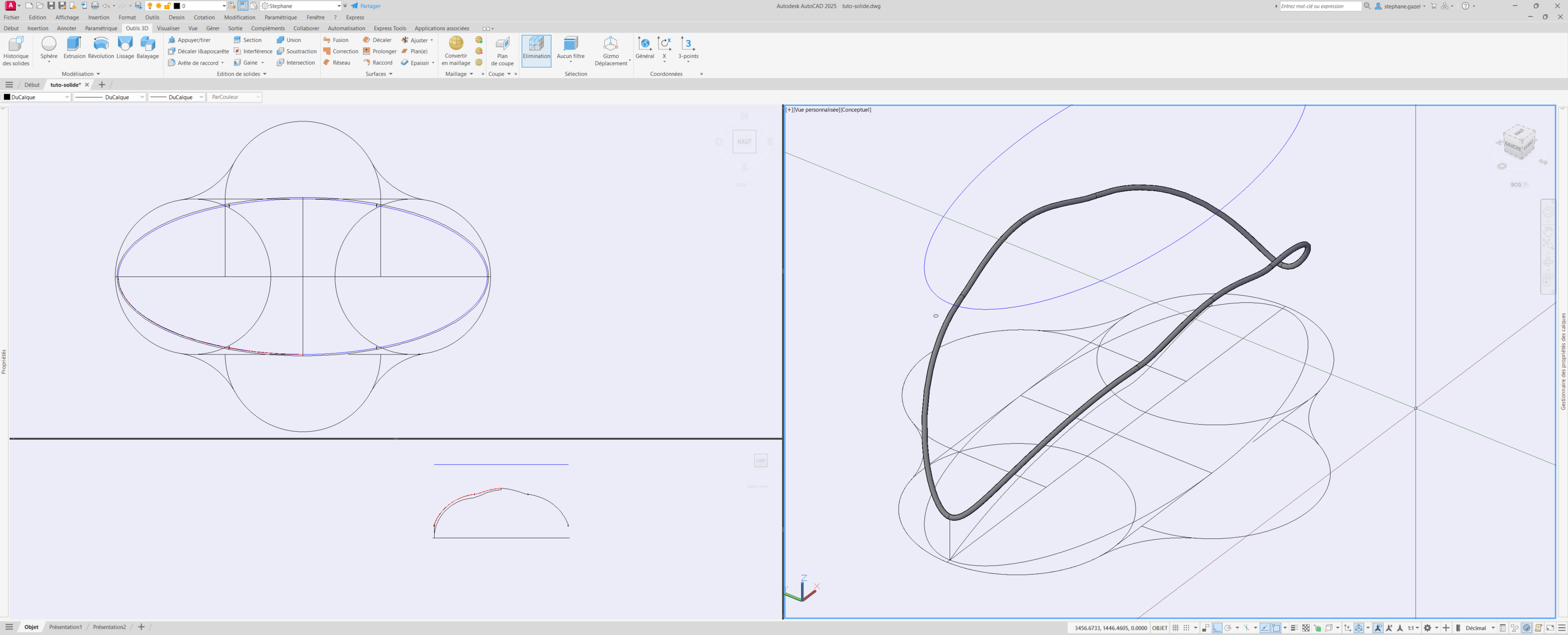 Use solid modeling commands in AutoCAD to create a fluid shape.