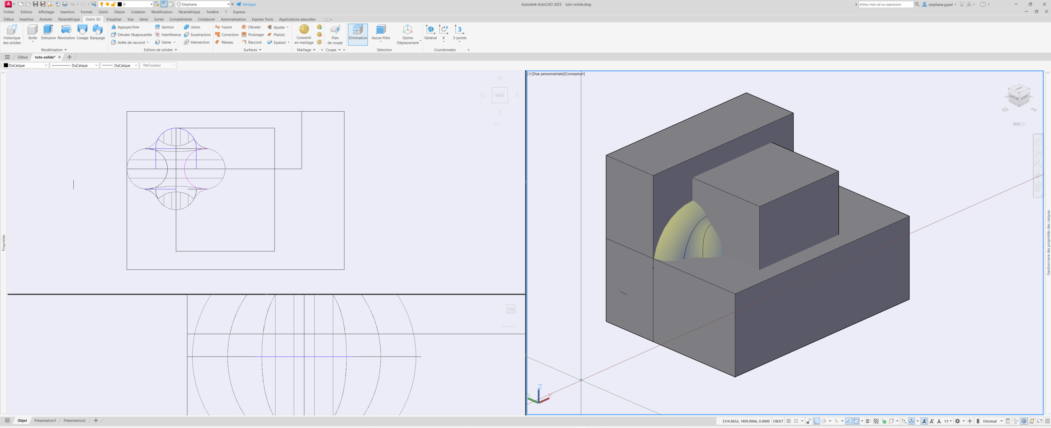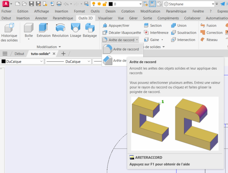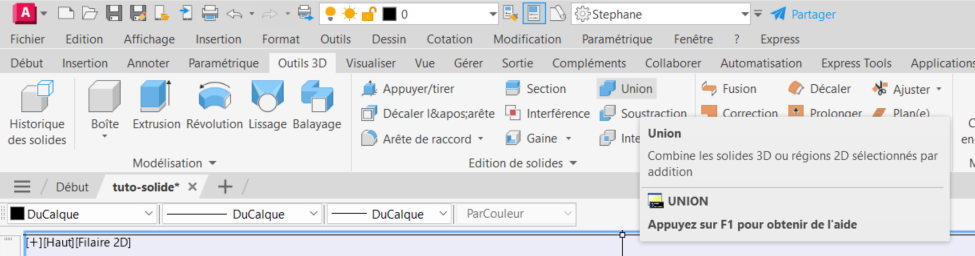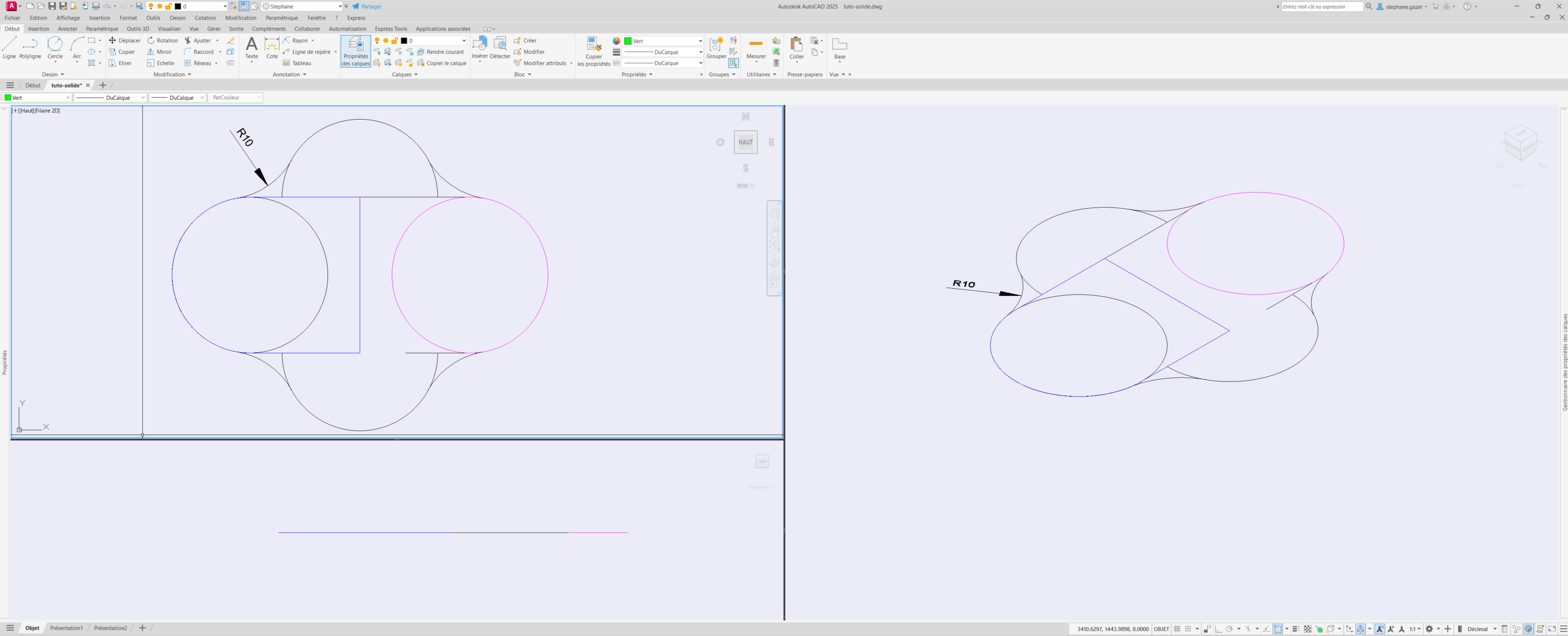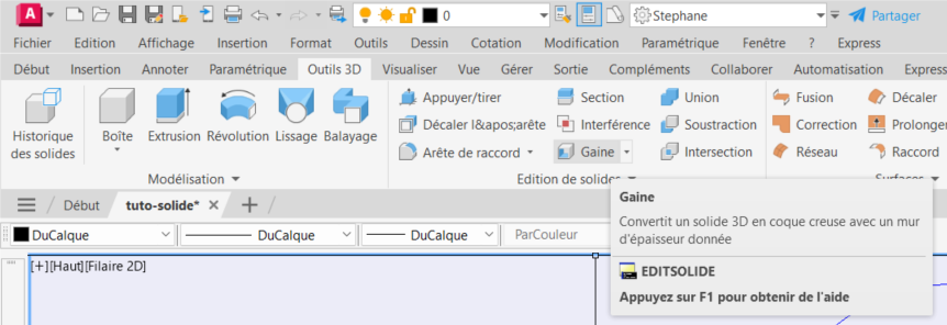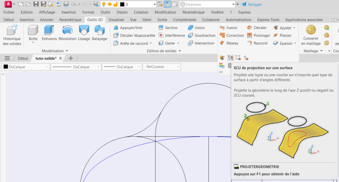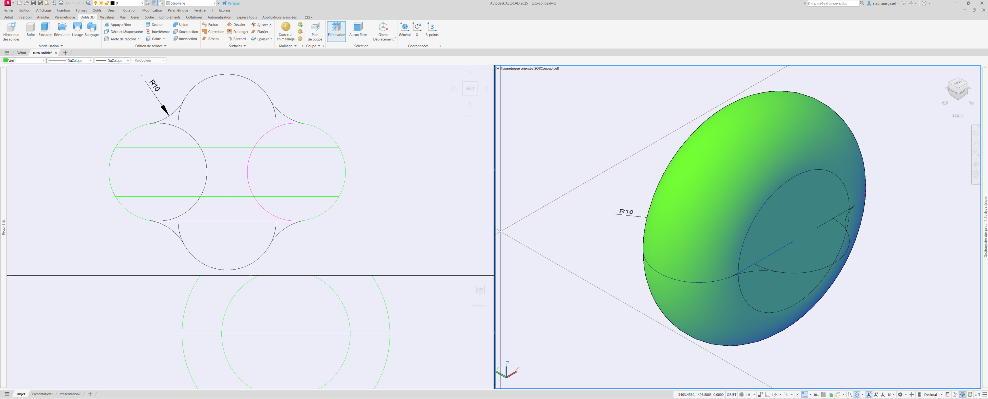 Use solid modeling commands in AutoCAD to create a fluid shape.