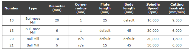 ➝ Select tool #20 - Ø10mm ball from the Tutorial2 library.