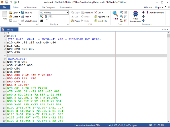 ➝ When you have finished editing your settings click on Post to generate the CNC program file. By default HSMWorks Edit will open and you can view and simulate the program code, and transfer it to the machine control.