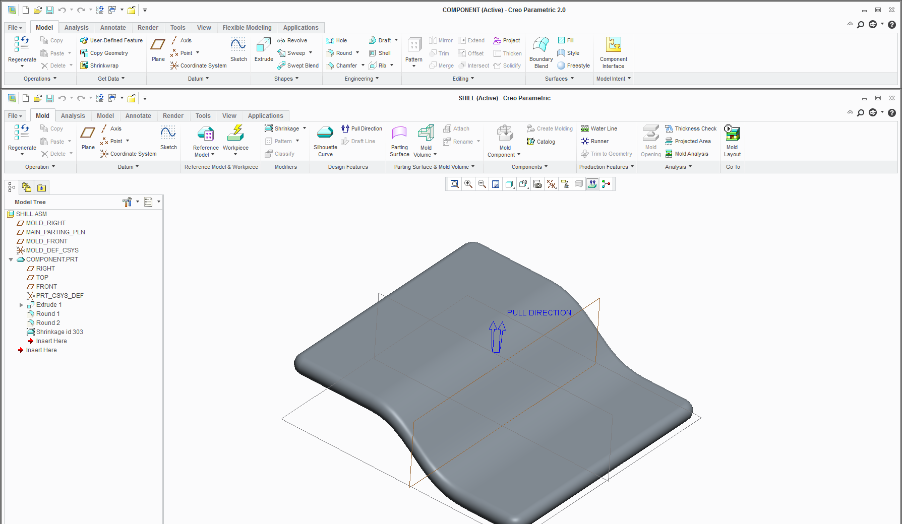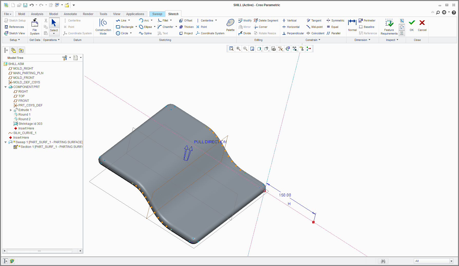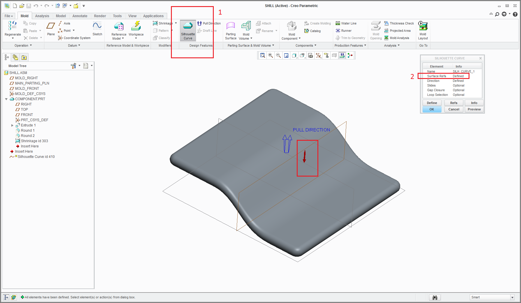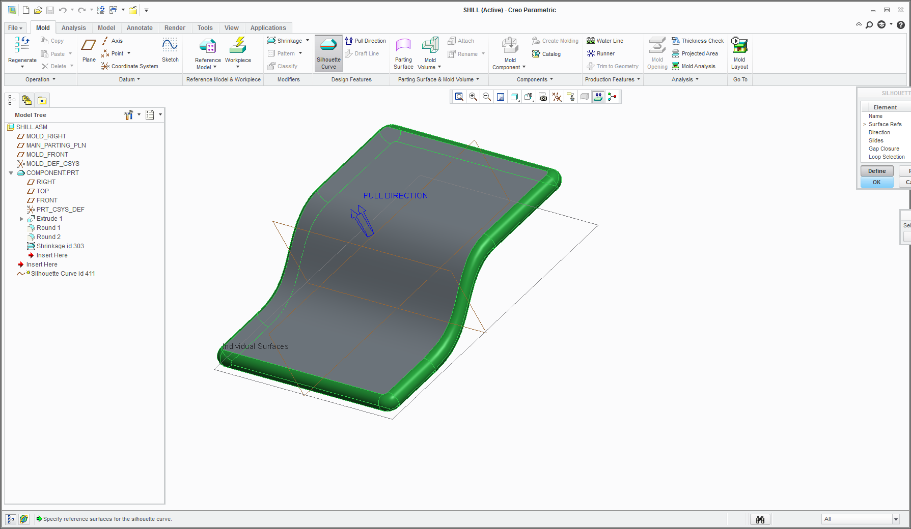Shelhoutte curve is a curve formed on outline of a part when viewed in particular direction. I am not going to explain the entire core cavity split because we already discussed it in previous tutorial . Please go through following steps