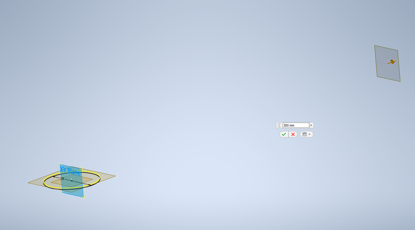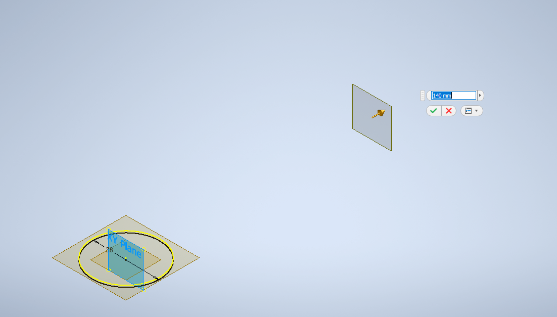 Use the same procedure to create a plane offset from the XY-origin, this time a shorter distance than the previous. Here we use 140mm in comparison to the previous 300mm.