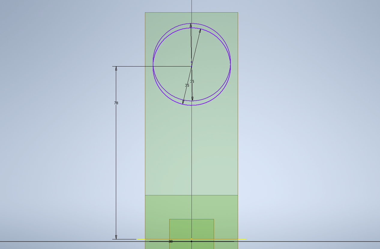 Next, start a new sketch on the opposite (bottom) side of the center piece, sketch a circle smaller than the upper part. This part is optional based on the intended shape of the vertical stand bottom. Since our part has a narrowing section on the vertical stand, we need to create a narrowing hole.