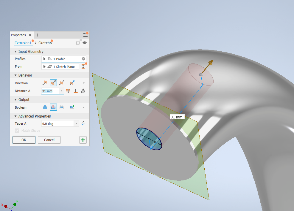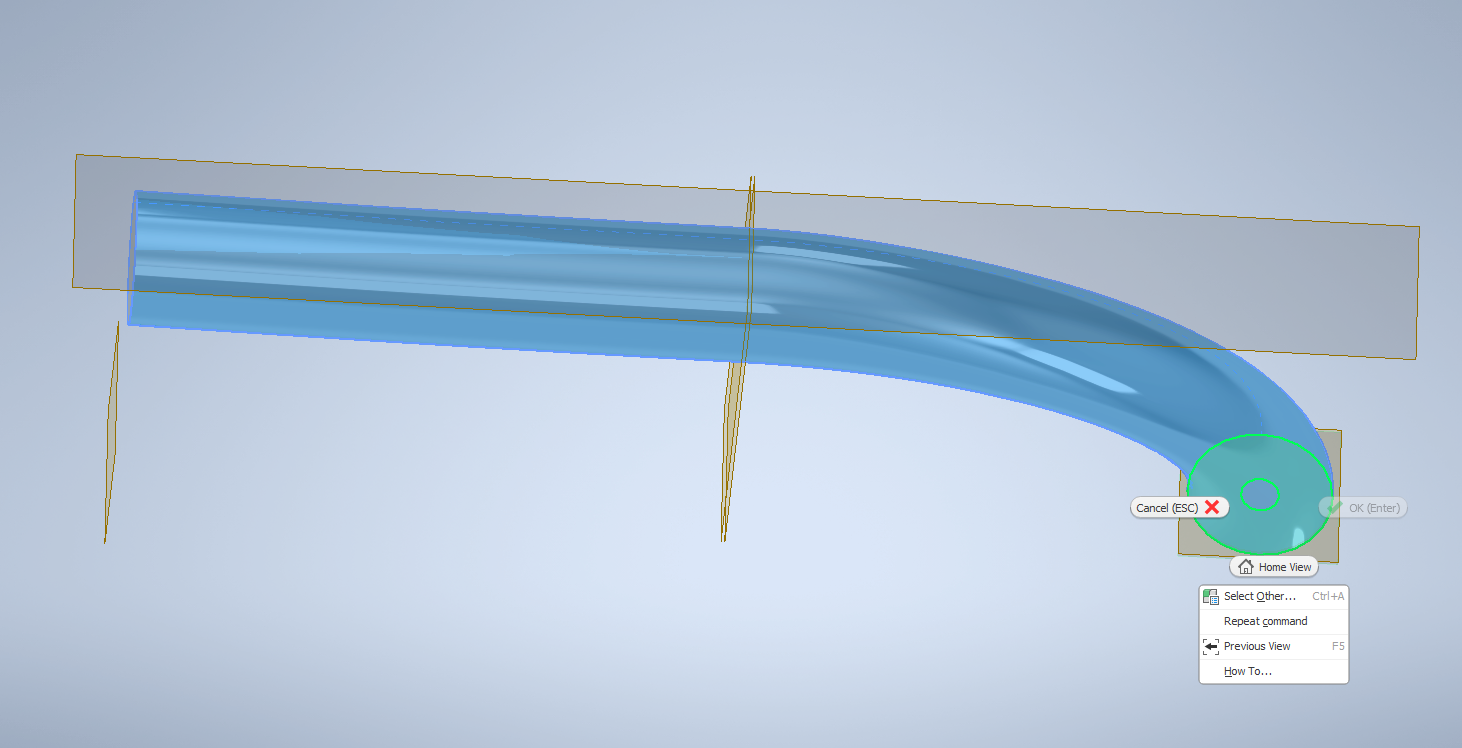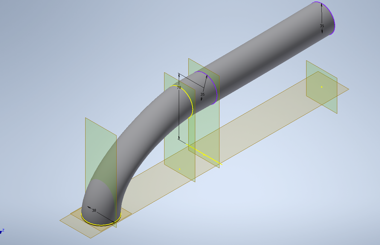Since we plan to use the 'Loft' feature to create the curved leg solid, we need to create more circular sketches along the path we want to have the leg be curved on.