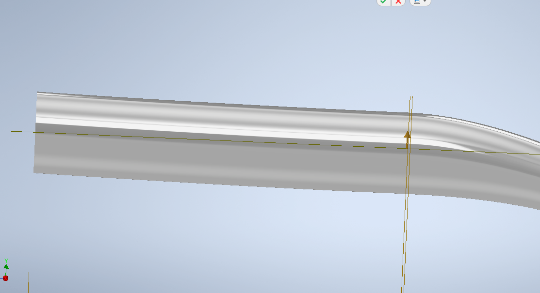 Since we wish to create a center piece connecting the lofted leg, we need to create an appropriate plane to sketch the piece first. Our goal is to create a plane parallel to the leg but situated at around the center of the leg height-wise.