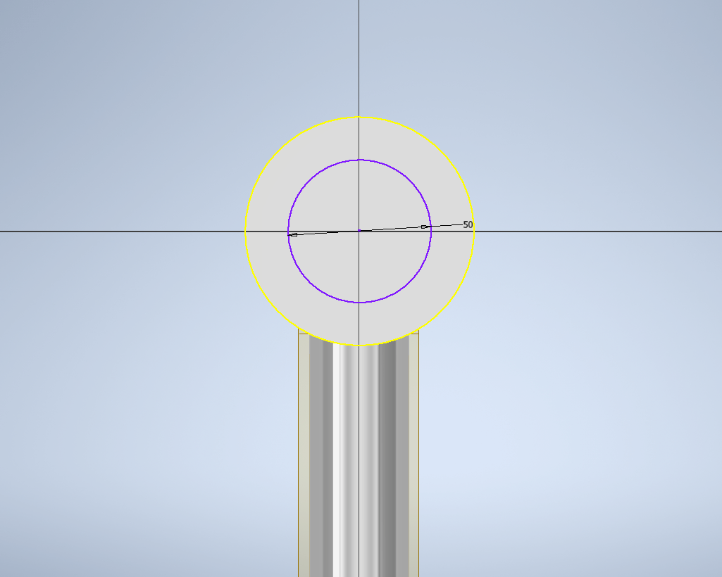 On the center piece that has been created, sketch an ideally large circle with the top as the surface.