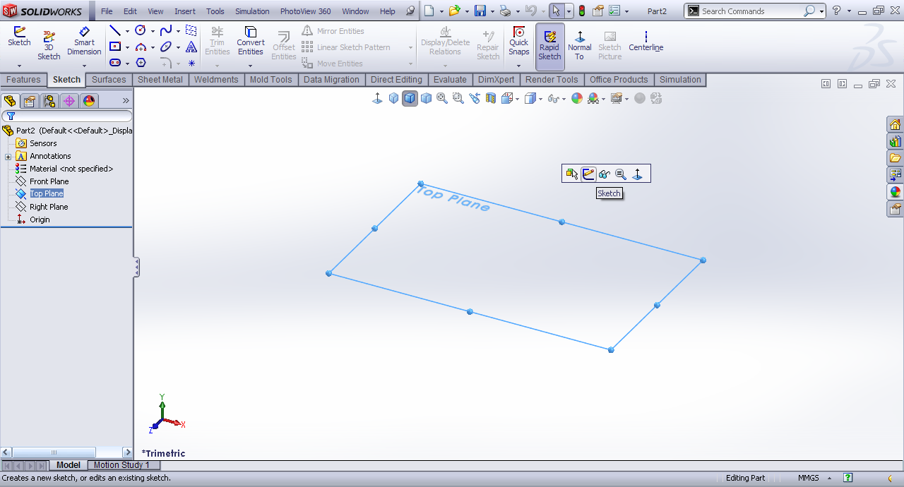 Exit the sketch and then again Top plane >> Sketch. Draw same profile.