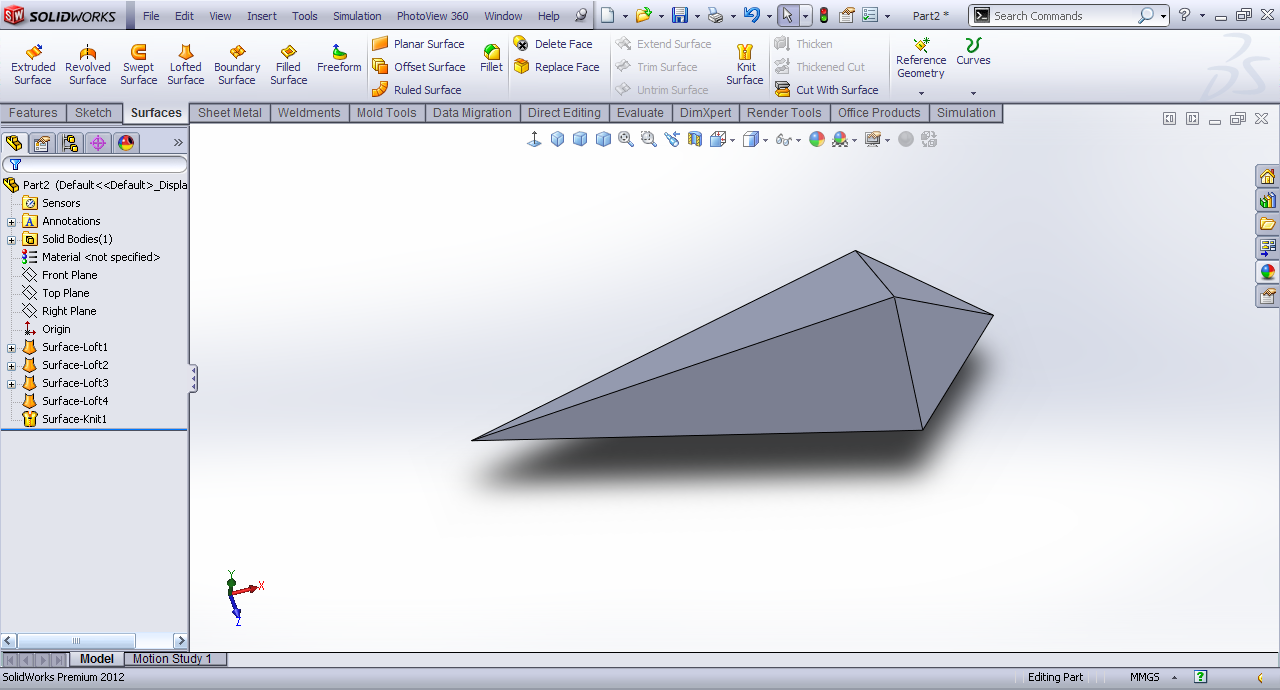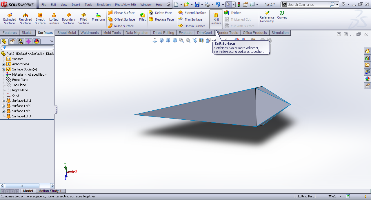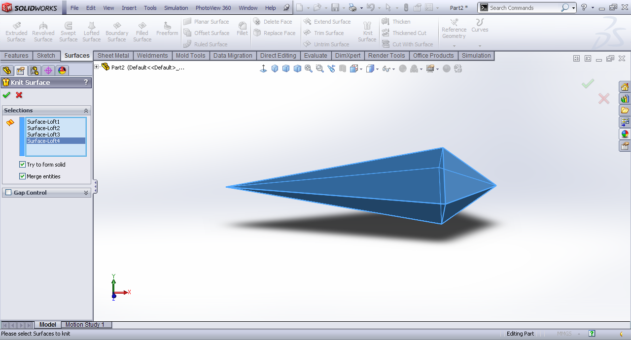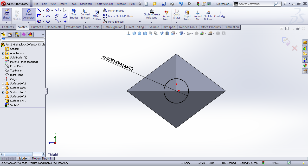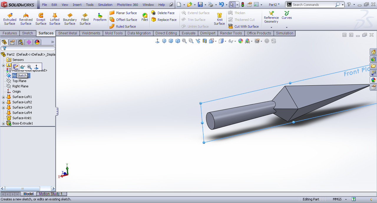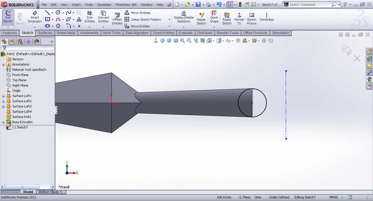 Now generate a lofted surface b/w the edge of the surface and sketch. Use selection manager to form group.