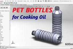 PET BOTTLE for Cooking Oil quantity 600ml there are: - Diamond model on shoulder - Thread three side - Groove on body - and Grip at the bottom Use the main command as: - Sweep Boss - Revolved Boss - Extruded Cut - Revolved Cut - Sweep Cut - Circular Pattern - Linear Pattern